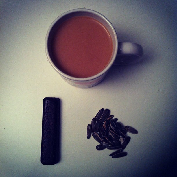 Tea with naked cocoa orange bar and sunflower seeds