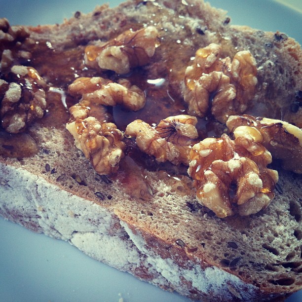 Walnuts with honey on eye bread
