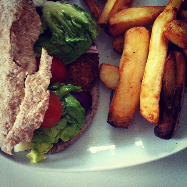 Spicy bean burger with chips