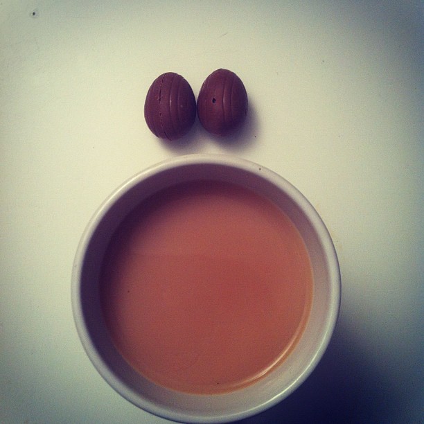 Earle grey tea with two milk chocolate eggs
