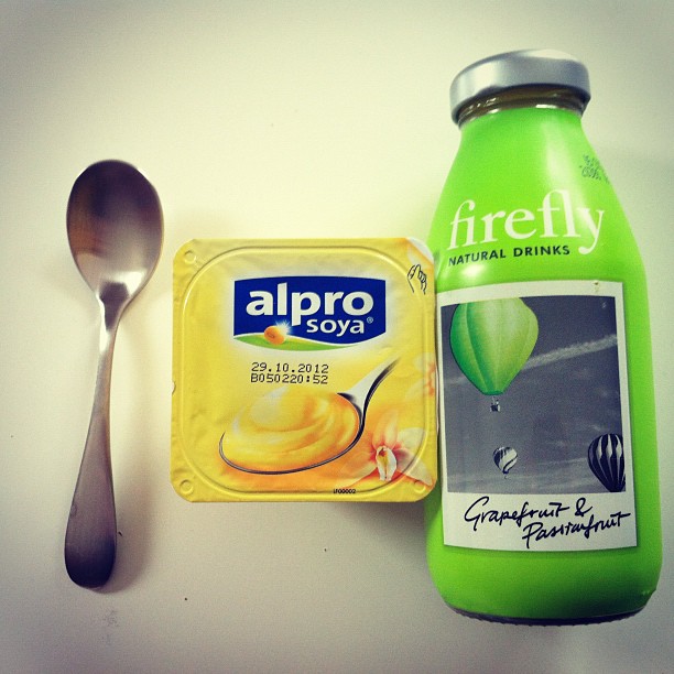 Vanilla soya yogurt with grapefruit and passionfruit drink