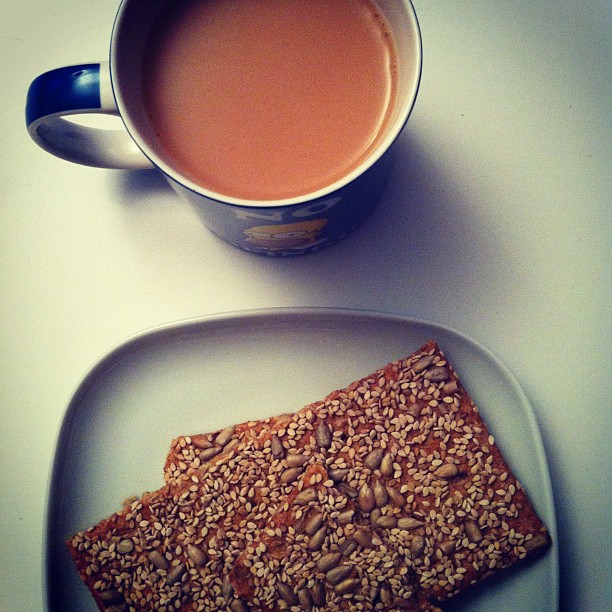 Sunflower and sesame crispbread with tea
