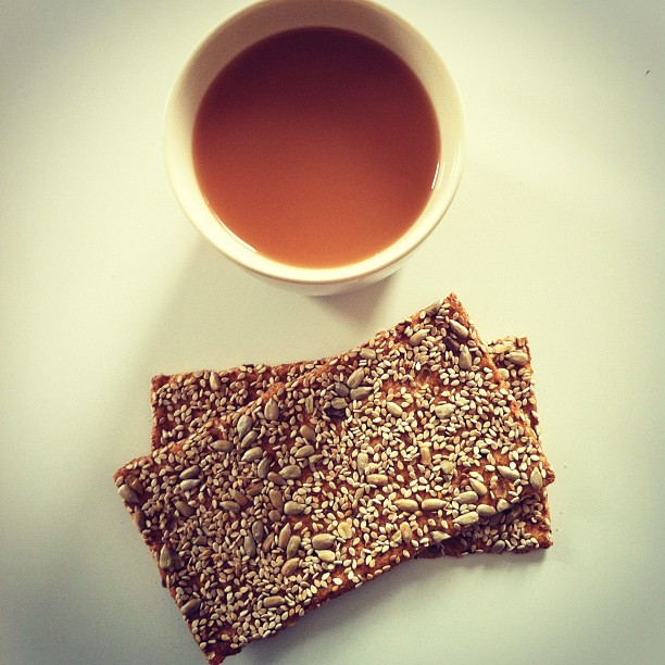 Sunflower and sesame crispbread with tea