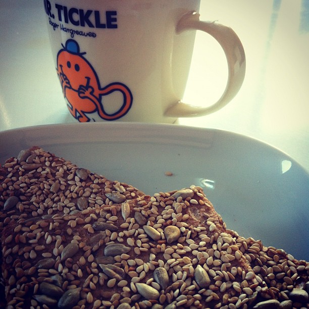 Sunflower and sesame seeds crispbread with tea