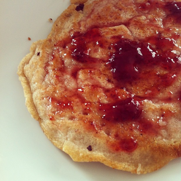 Buckwheat gluten-free pancakes with raspberry jam