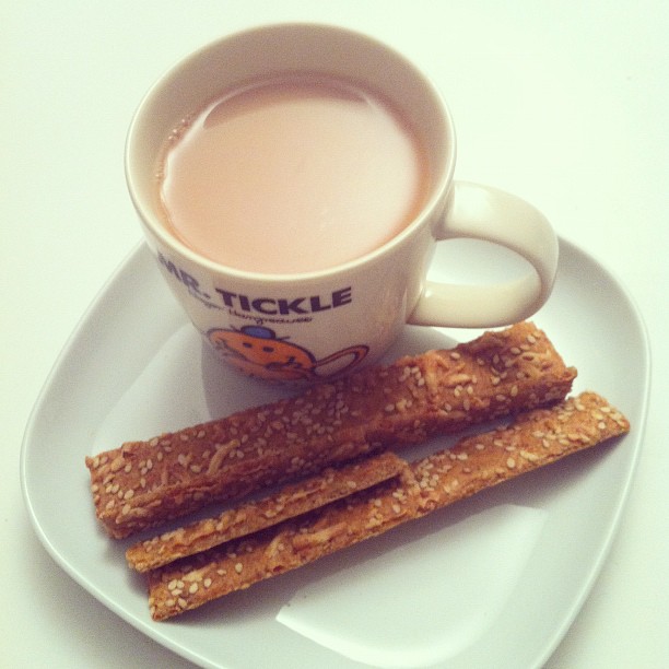 Tomato and basil crispbread with tea