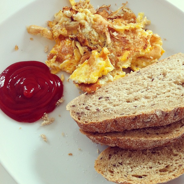 Egg, rye bread, chilli ketchup. Done.