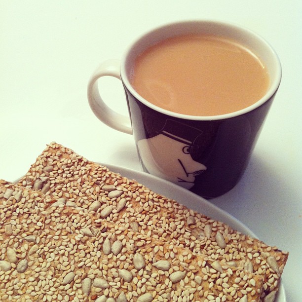 Sunflower and sesame crispbread with tea
