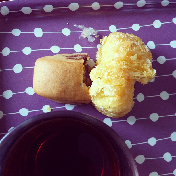 Black tea with cinnamon roll and Baklawa