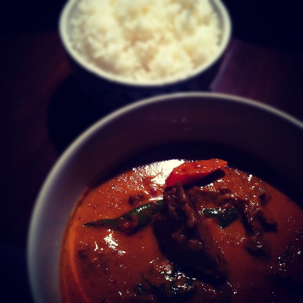 Red lamb curry with jasmine rice