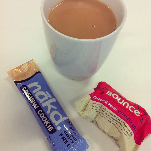 Tea with cashew cookie naked bar, and cashew and pecan bounce ball