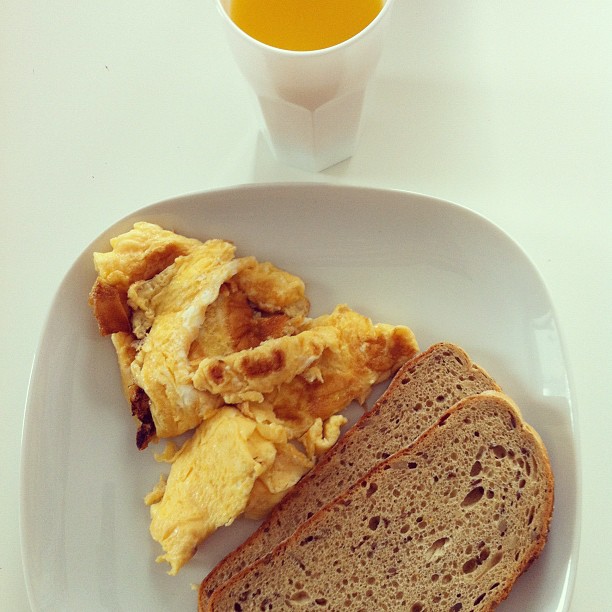 Egg with polish wholemeal bread and orange juice