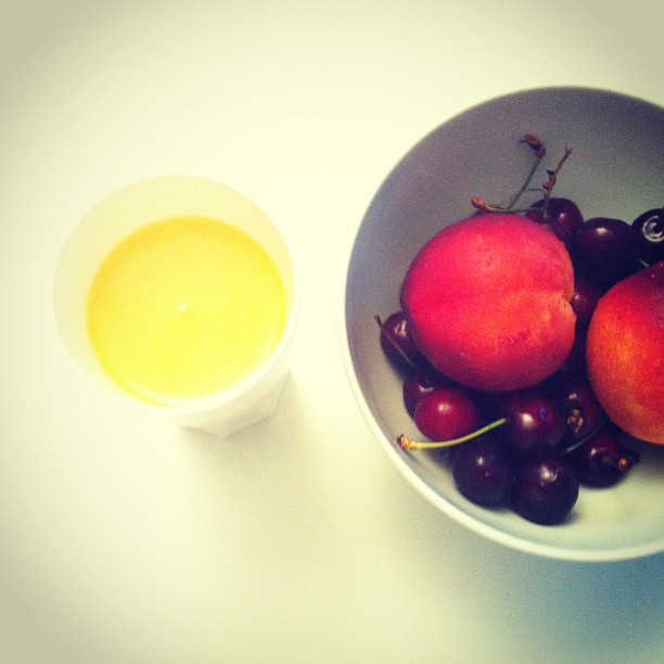 Cherries, two nectarines and orange juice