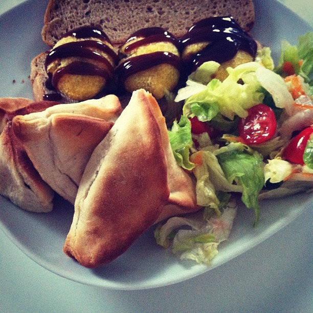 Kubba with spinach pastry and salad
