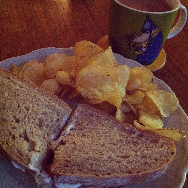 Phillapedia sandwich with crisps and tea