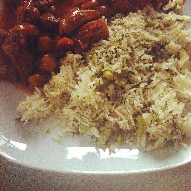 Dill with board beans in rice and okra