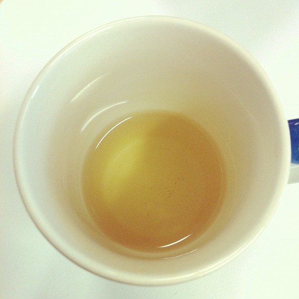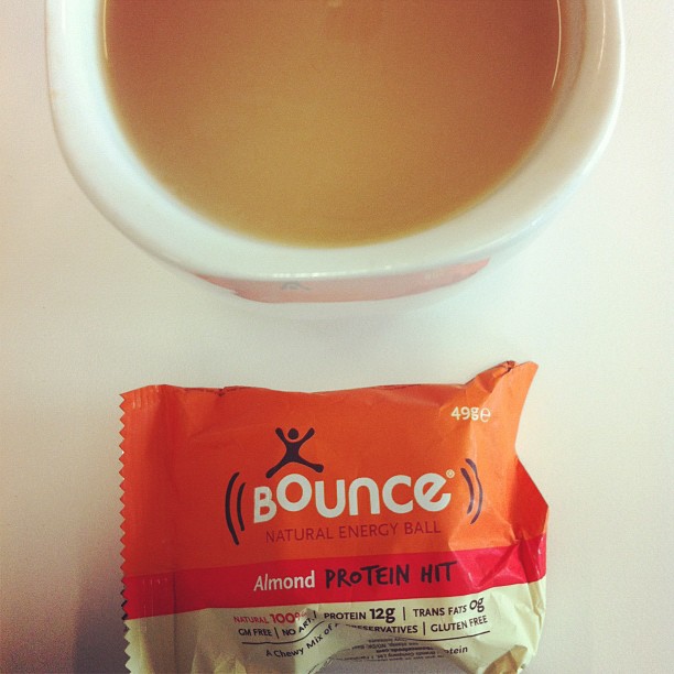Butter on wholemeal bread with earl grey tea and organic almond milk