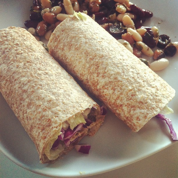 Hummus wrap with three bean salad