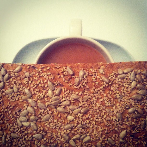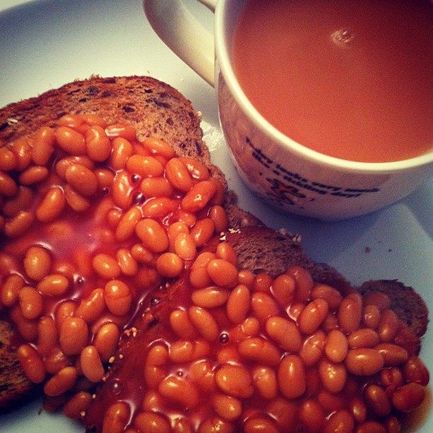 Organic beans on wholemeal toast with earl grey tea in almond milk and a dash of agave syrup