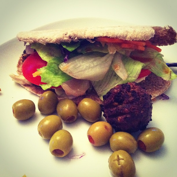 Falafel in pitta and olives