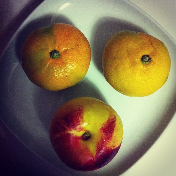 Nectarine with two satsumas
