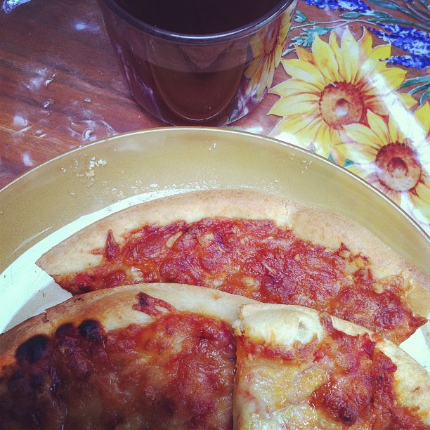 Black tea with pizza