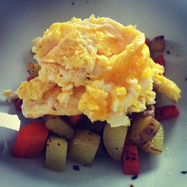 Egg with potatoes, carrots and mixed herbs. Inspired by @hailheeyy