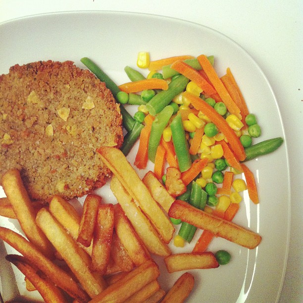 Nacho burger with chips and vegetables