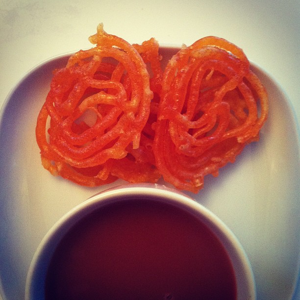 Baklawa with tea in organic almond milk