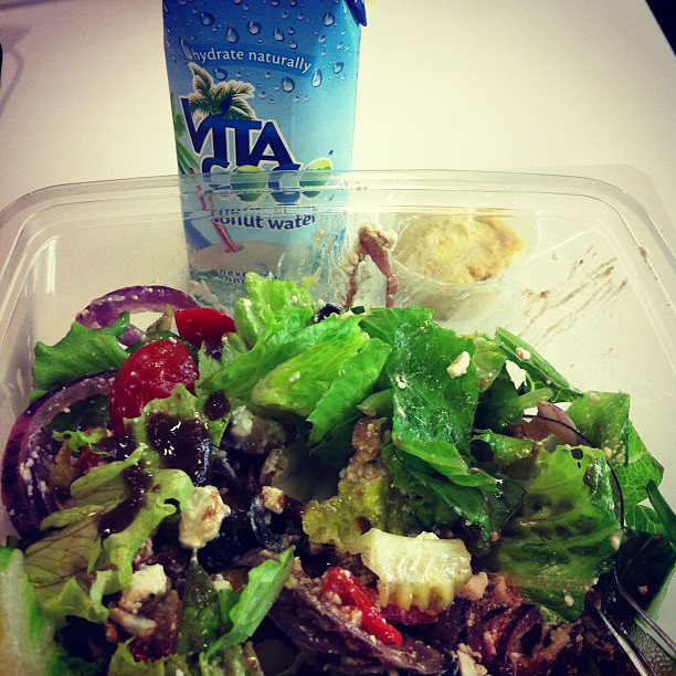 Greek salad with coconut water