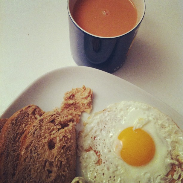 Egg with rye bread with tea