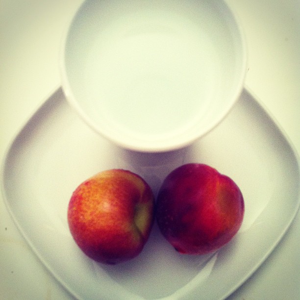 Water and two nectarines