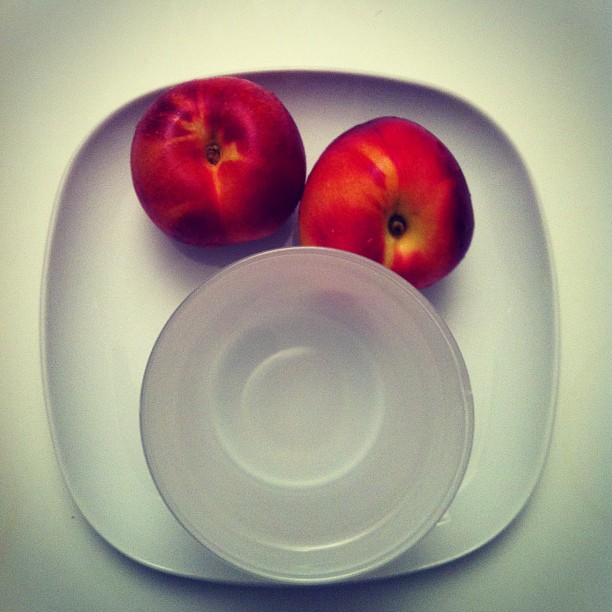 Two nectarines with water