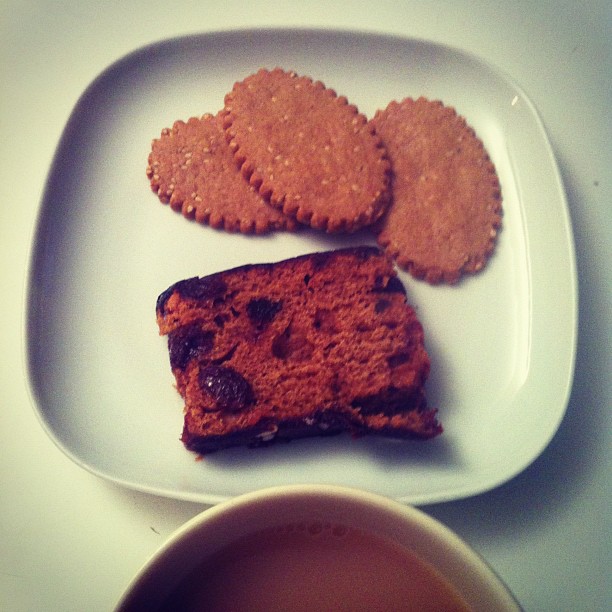 Wholemeal biscuit with apple cake and Darjeeling earl grey tea