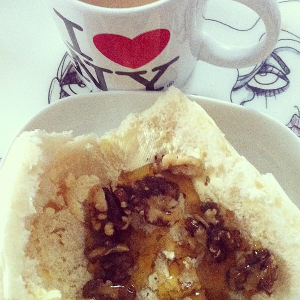 Walnuts and honey in a baguette with Darjeeling earl grey tea