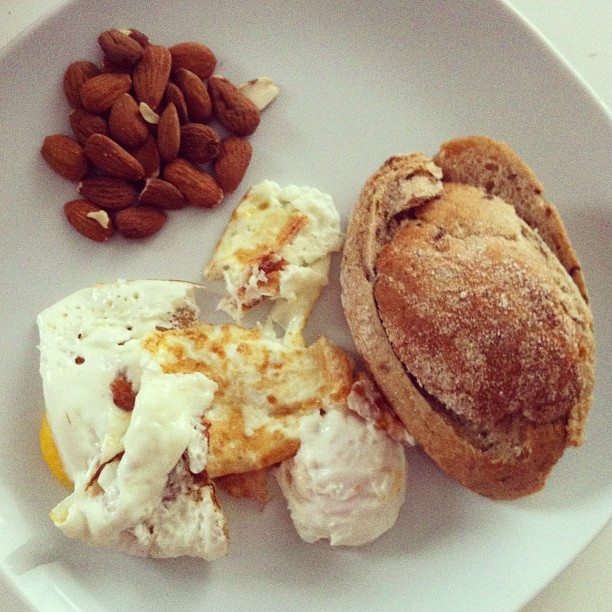 Egg with organic almonds and rye bread