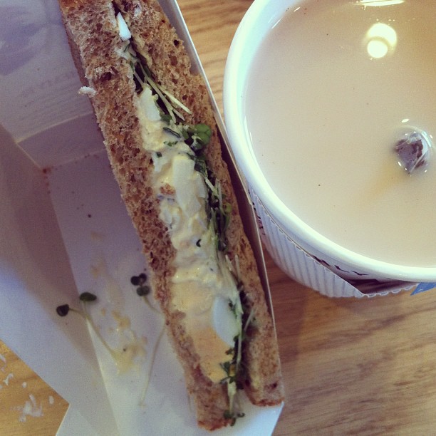Egg and cress sandwich with earl grey tea