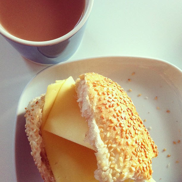 Cheese in a baguette with earl grey tea